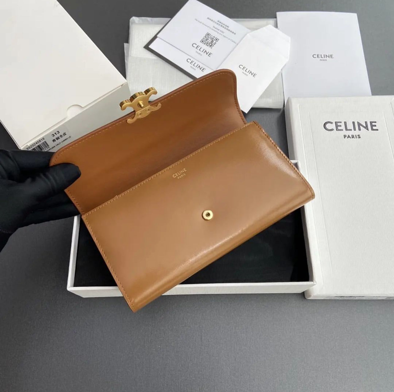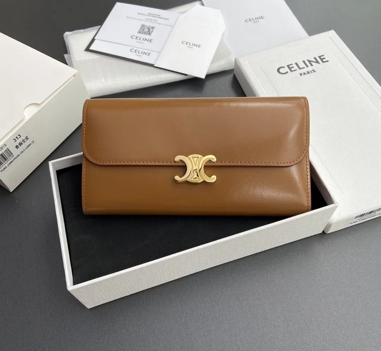 Elevate your style with the Celine Large Triomphe Wallet, a sophisticated and functional accessory crafted for modern elegance. Designed with premium materials and exquisite craftsmanship, this wallet is a must-have for those who appreciate timeless luxury.