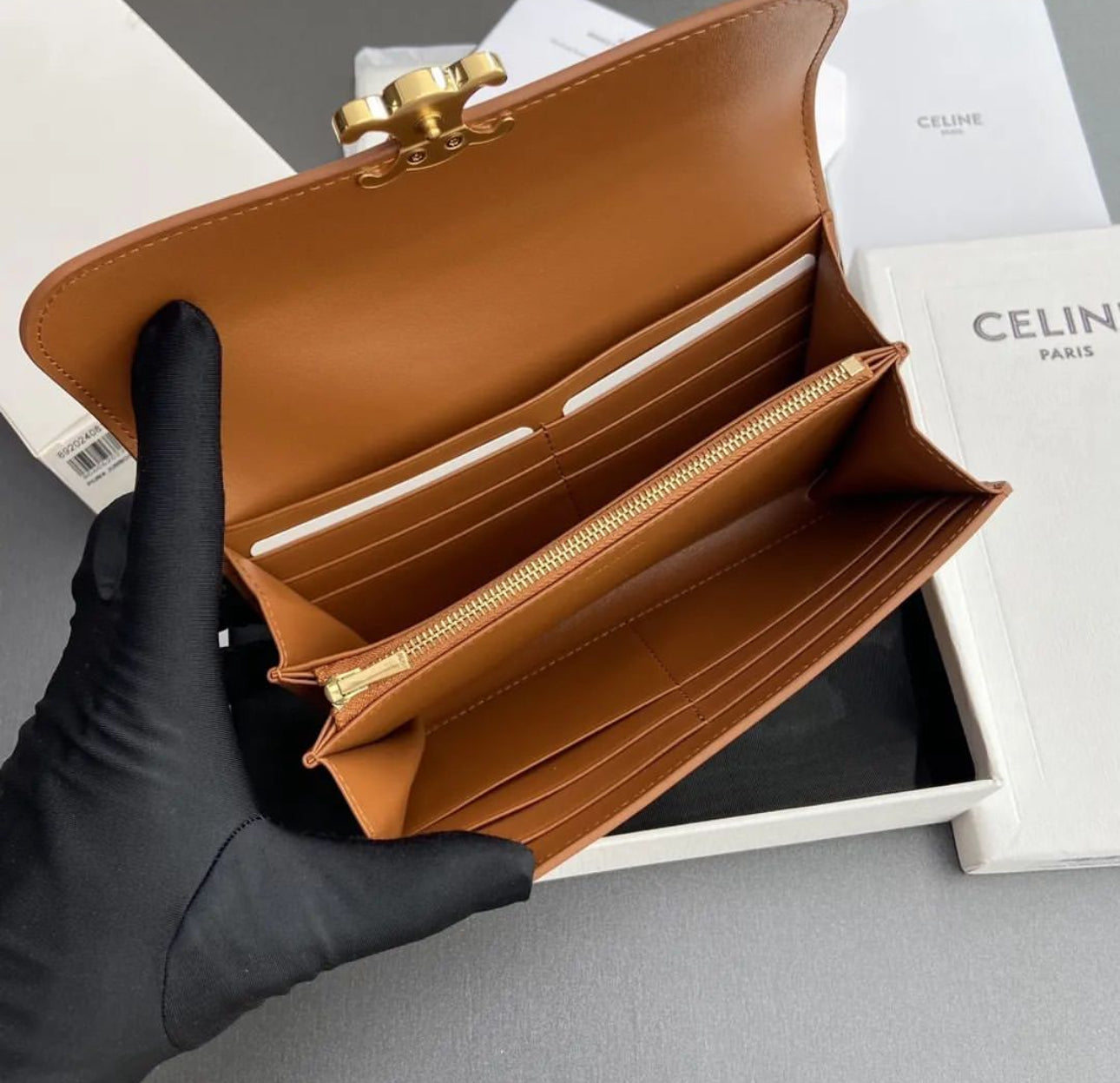 Perfect for everyday use or special occasions, the Celine Large Triomphe Wallet seamlessly blends style and practicality. Its multiple card slots, bill compartments, and a secure coin pocket make it an essential investment piece for those who appreciate refined accessories.