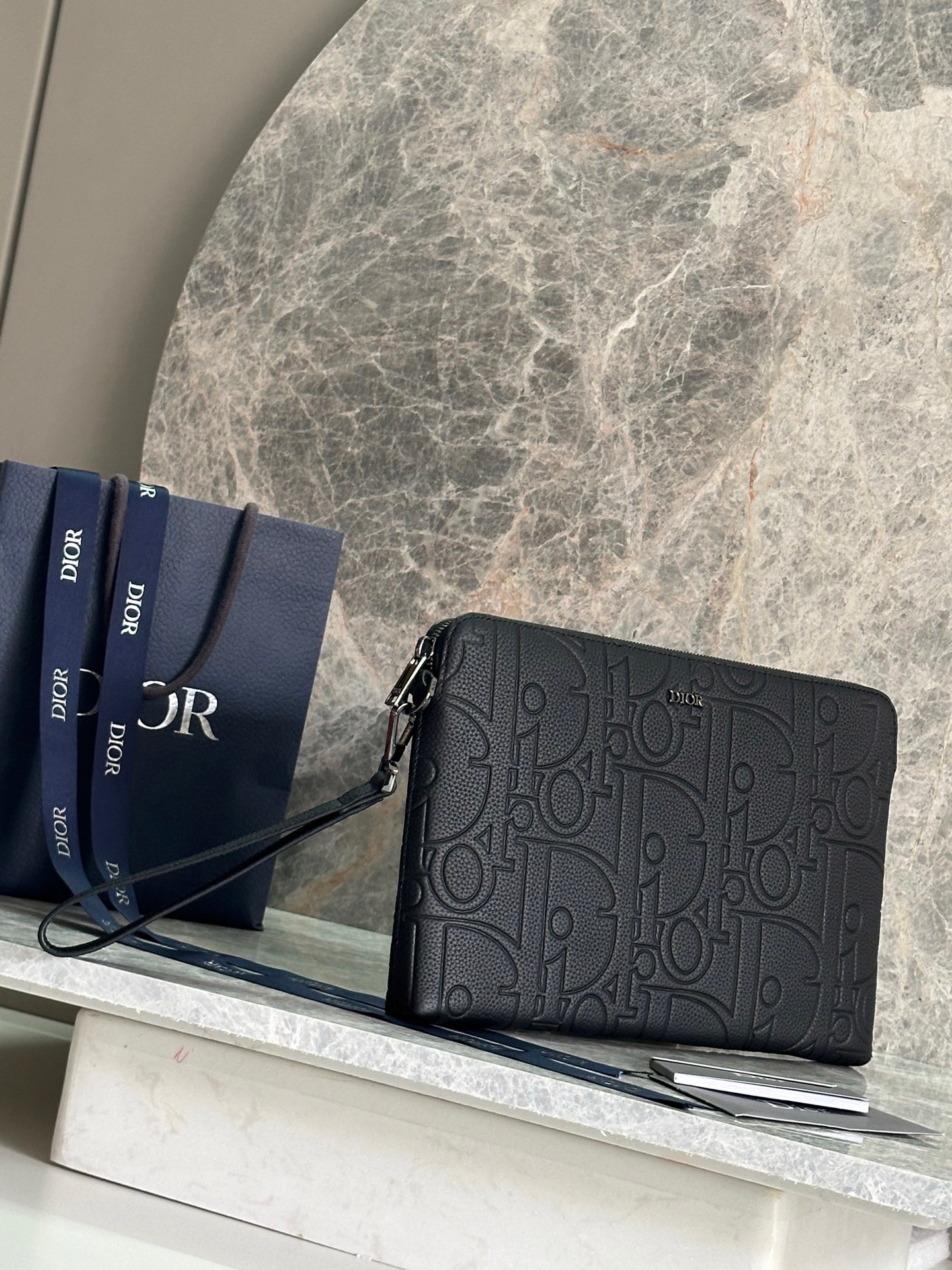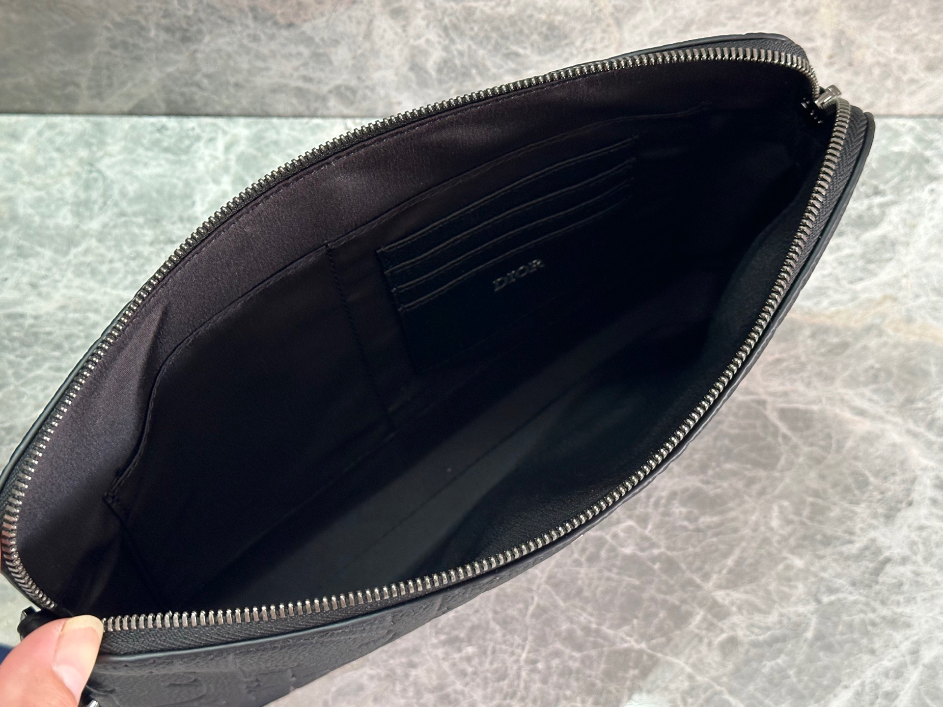 Material:Â Grained Calfskin Leather with Dior Detailing