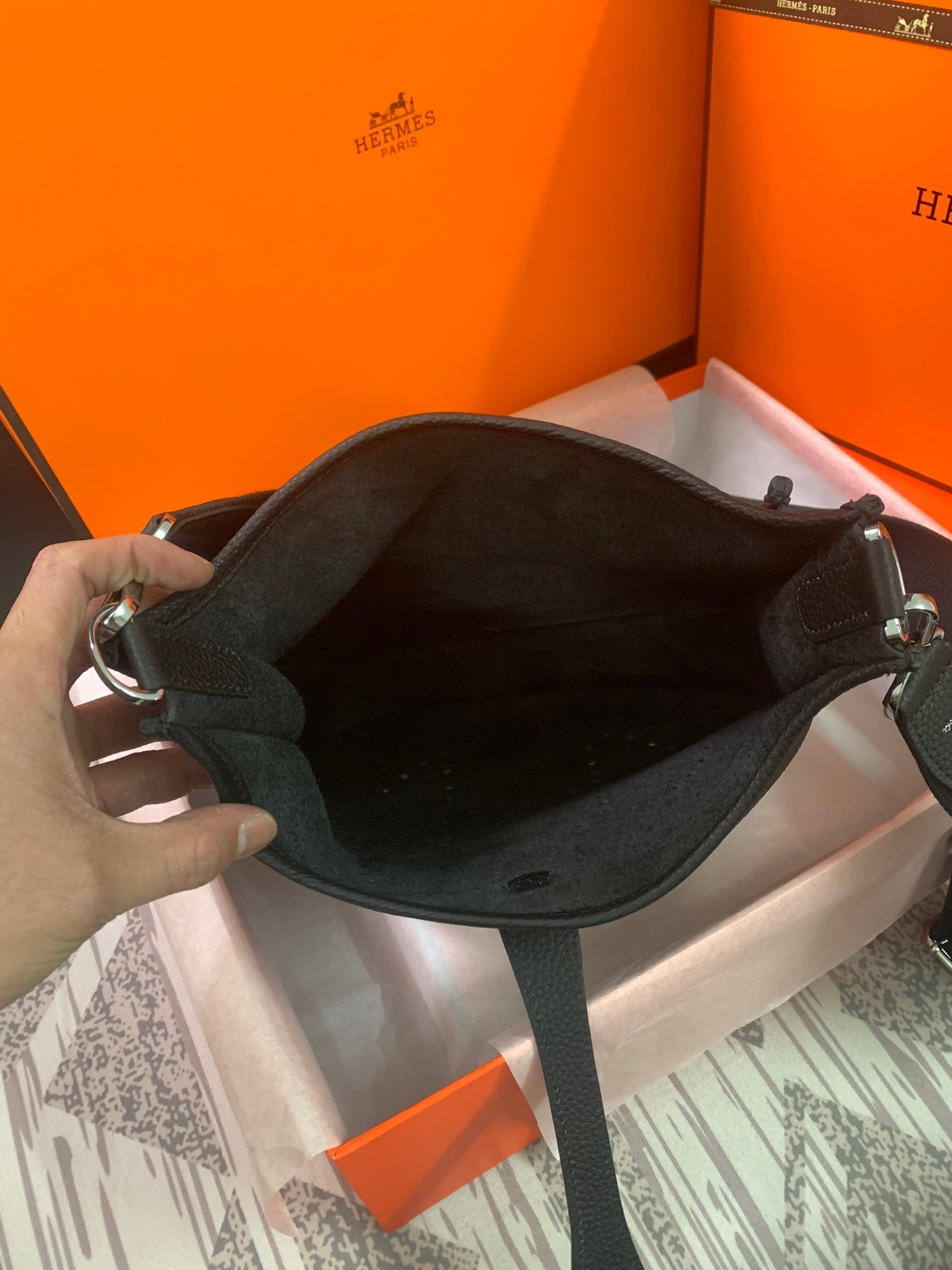 Crafted from leather with durable silver hardware, this Hermes bag embodies understated sophistication while ensuring long-lasting quality. Its lightweight design and adjustable strap make it the ideal companion for both daily use and travel.