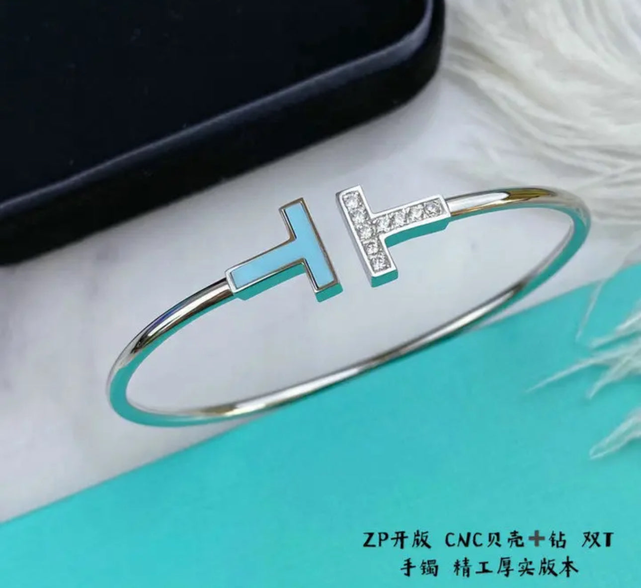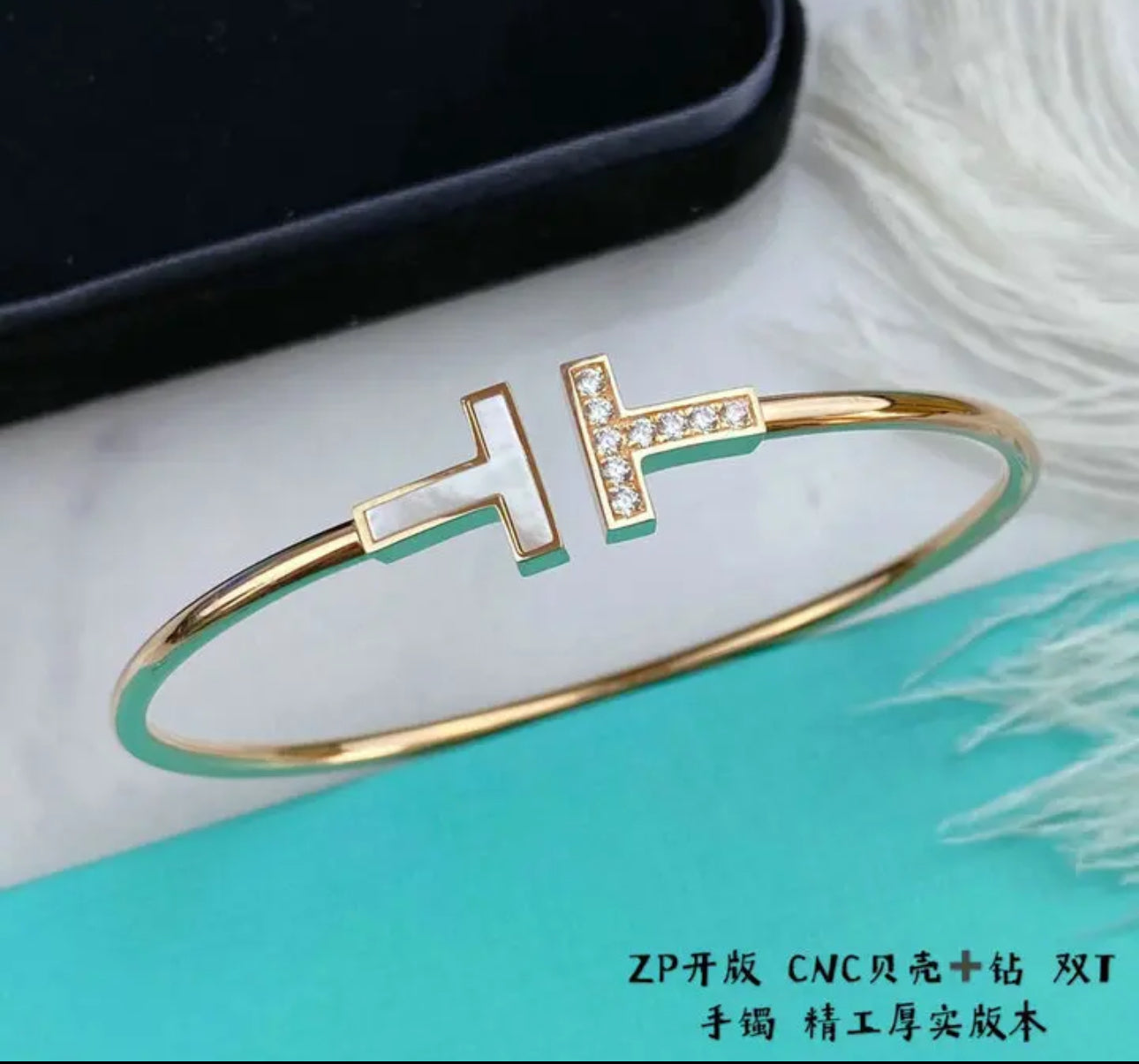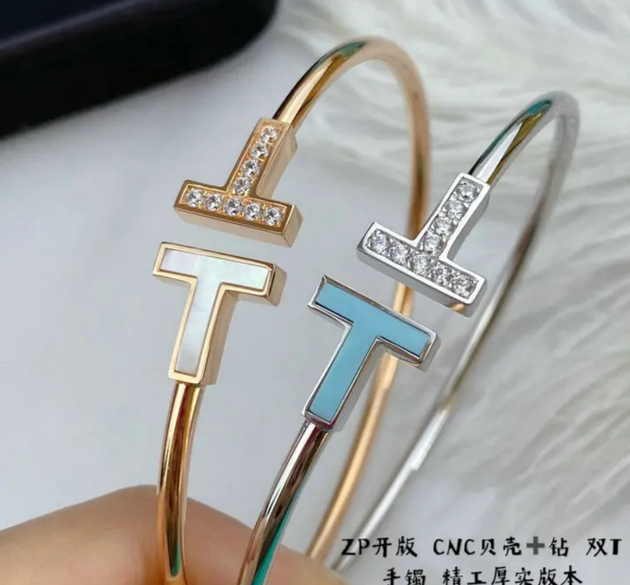 Design: Features a sleek, open-ended silhouette with a signature “T” motif, representing strength and elegance.